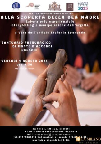 Sassari: alla scoperta della Dea Madre, laboratorio artistico nell’area archeologica di Monte d’Accoddi. Venerdì 4 agosto dalle 9 l’area archeologica di Monte d’Accoddi ospiterà il laboratorio esperienziale di manipolazione dell’argilla “Alla Scoperta della Dea Madre” a cura dell’artista Stefania Spanedda. L’iniziativa è proposta dall’associazione dei Messy lab collettivo di ceramiche aps in collaborazione con il […]