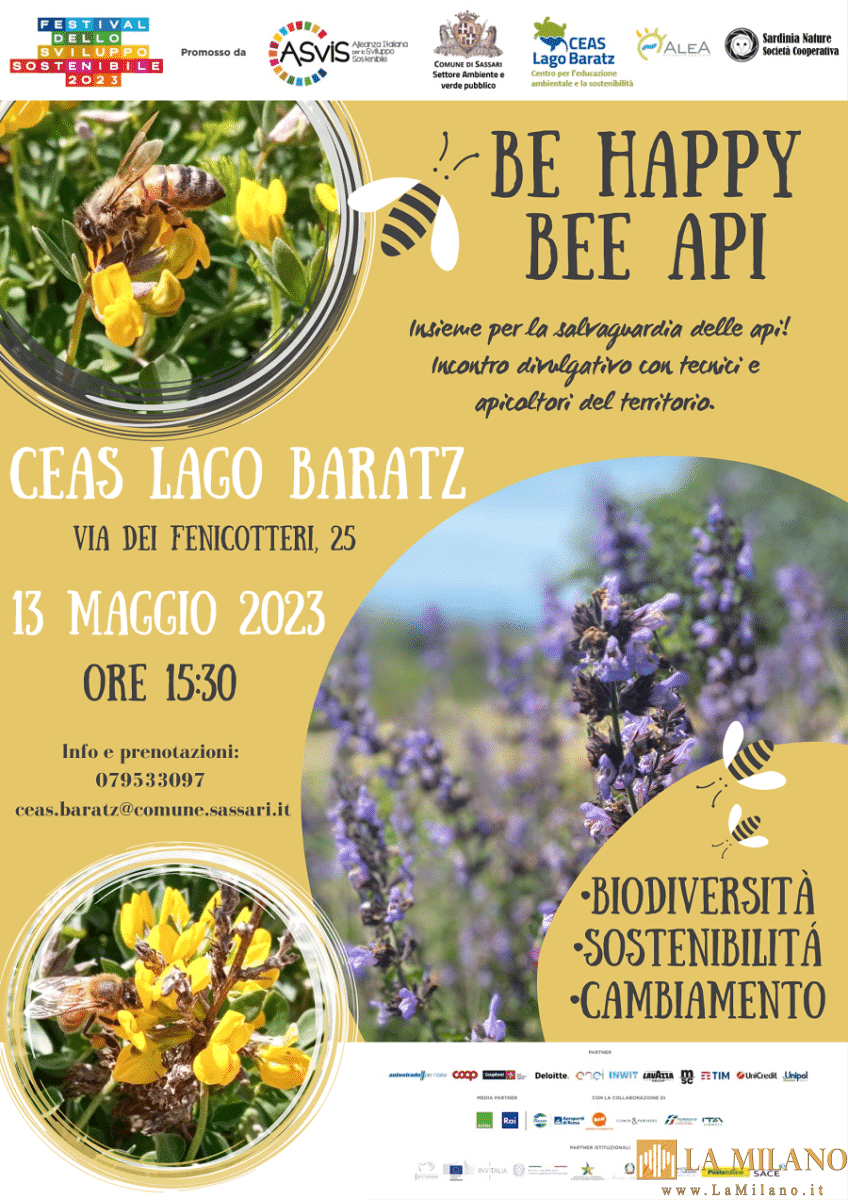 In occasione della settima edizione del Festival dello Sviluppo Sostenibile 2023, la più grande manifestazione italiana sulla sostenibilità promossa dall’AsviS, sabato 13 maggio, dalle 15:30 alle 19:30, il Ceas Lago Baratz del Comune di Sassari, organizza un incontro dedicato alle api, domestiche e selvatiche, e a tutto il resto degli insetti pronubi, che svolgono in natura un importante servizio di regolazione dell’ecosistema e conservazione della biodiversità.